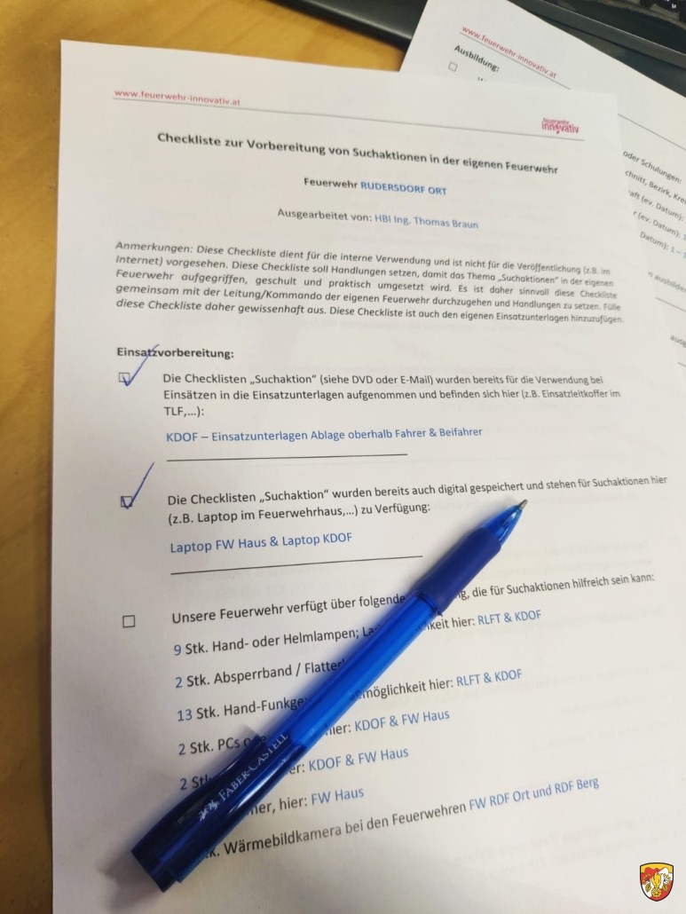 Ziel der Schulung war es den richtigen Ablauf von Suchaktionen und die möglichen Vorgehensweisen aufzufrischen. Speziell erwähnenswert ist hierbei die Plattform feuerwehr-innovativ.at/ unter der Leitung von Christian Doczekal. Die Plattform enthält nützliche Tipps & Tricks zum Thema „Suchaktionen“ und bietet ebenso Fortbildungen in diesem Bereich an.