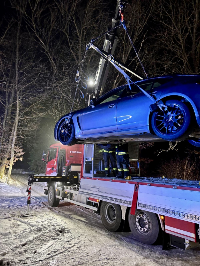 Am vergangenen Mittwoch wurden wir zu unserem ersten Einsatz im Jahr 2026 gerufen. Wir wurden von unseren Kameraden der Freiwilligen Feuerwehr Deutsch Kaltenbrunn-Berg zu einer Fahrzeugbergung nachalarmiert. Der PKW kam aufgrund eines Motorschadens zum Stillstand, sodass der PKW-Lenker seine Fahrt nicht mehr fortsetzen konnte. Mithilfe unseres WLF-K konnte das Fahrzeug schonend an einem sicheren Platz abgestellt werden.