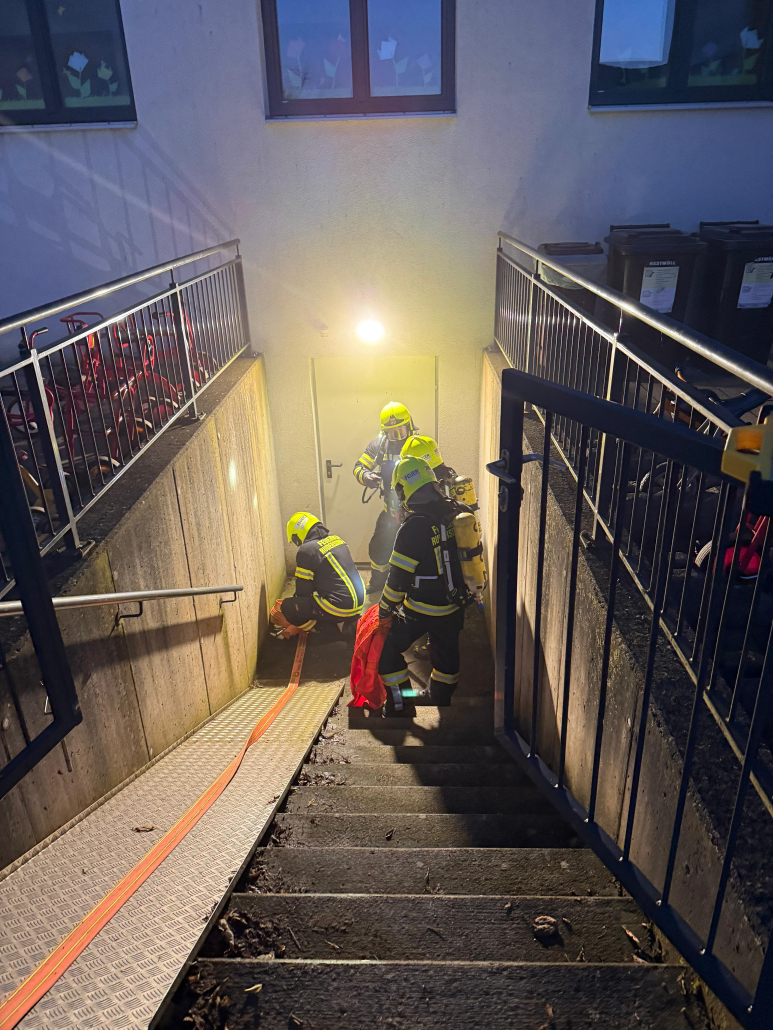 Die Übungsleiter LM Raphael Marth und FM Jeffrey Szvetitz simulierten dazu einen Kellerbrand mit vermissten Personen. Dazu wurde der Keller vernebelt, damit die Atemschutzträger unter möglichst realen Bedingungen ihr Können unter Beweis stellen konnten. Nachdem die Personen gerettet wurden und wir den Keller rauchfrei hatten, fand noch eine Begehung durch die Übungsleiter statt, damit alle beteiligten Kräfte sich einen Eindruck der Gegebenheiten machen konnten.