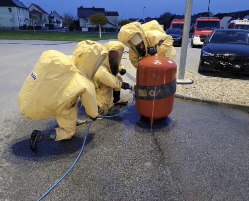 Am vergangenen Montag fand der letzte Teil der Fortbildungserie Gefährliche Stoffe in Pinkafeld statt. Arbeiten unter Schutzstufe 3. Gemeinsam mit anderen Wehren des Gefahrgutzuges SÜD des BGLD LFV konnten erneut Theorie und Praxis beübt werden.